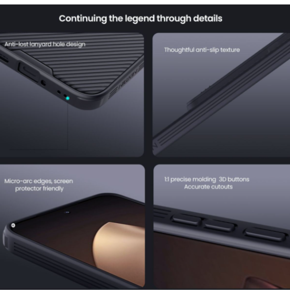 Nillkin CamShield es la nueva funda premium que protege tu equipo sino también tu privacidad. Está hecho de plástico duradero de alta calidad con una parte posterior con textura antideslizante que repele las huellas dactilares, el polvo u otras partículas. La cubierta cuenta con una tapa de protección de cámara única que brinda protección total a la cámara de su dispositivo. La cubierta de la cámara está bien sujeta al estuche pero se desliza fácilmente sobre las lentes de la cámara. La funda se adapta perfectamente a su equipo celular y, gracias a su diseño ultradelgado, no añade volumen innecesario ni casi nada de peso.