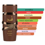 La base del perfume se construye sobre un acorde sensual y seductor de vainilla cremosa y haba tonka, complementado por la intensidad del cuero y las maderas ahumadas. Esta combinación aporta un carácter sofisticado y duradero, asegurando una estela magnética y elegante que acompaña a quien lo lleva a lo largo del día y la noche.