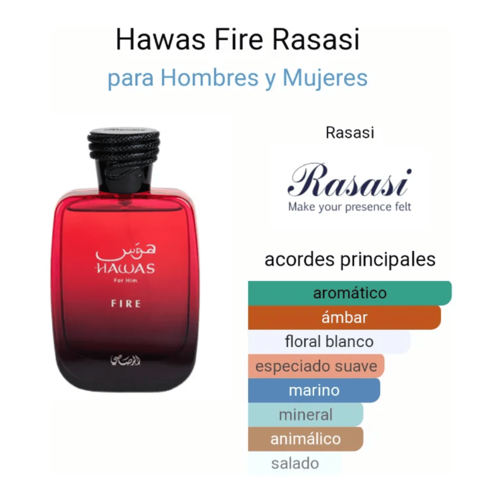 Rasasi Hawas Fire 100ml EDP es una fragancia que trasciende las barreras de género, diseñada para aquellos que buscan una experiencia olfativa única y envolvente. Este eau de parfum se presenta en un elegante formato spray, ideal para llevar contigo en cualquier ocasión. Su esencia captura la esencia de la audacia y la pasión, convirtiéndolo en el complemento perfecto para quienes desean dejar una impresión duradera. La línea Hawas es conocida por su capacidad de evocar emociones intensas y recuerdos inolvidables. Aunque no se especifican las notas olfativas, la fragancia promete una experiencia sensorial que despierta los sentidos y realza la personalidad de quien la lleva. Su presentación de 100 ml asegura que tendrás suficiente para disfrutar de esta cautivadora fragancia en múltiples ocasiones