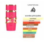 Yara Candy de Lattafa Perfumes es una fragancia de la familia olfativa Floral Frutal Gourmand para Mujeres. Esta fragrancia es nueva. Yara Candy se lanzó en 2024. Las Notas de Salida son grosellas negras y Mandarina verde; las Notas de Corazón son Strawberry Fizz Candy y gardenia; las Notas de Fondo son vainilla, ámbar, almizcle y sándalo