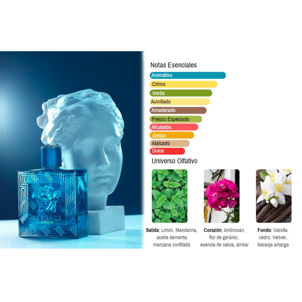Versace Eros Eau De Toilette 100 ml para Hombre es una fragancia que encarna la pasión y el deseo. Inspirada en la mitología griega, esta esencia amaderada y fresca es ideal para el hombre moderno que busca dejar una impresión duradera. Las notas de salida de limón, manzana verde y menta proporcionan una apertura vibrante y refrescante.
